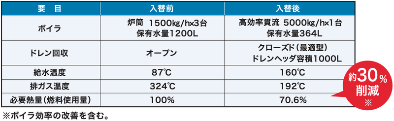 既設:他社オープン回収 → 弊社ボイラSQ-5000B16 + HX-1000Aクローズドドレン回収