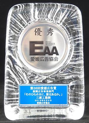2019年6月6日(木)、ANAクラウンプラザホテル松山にて愛媛広告協会による「第38回愛媛広告賞」授賞式が行われました。授賞式では、2018年10月からスタートした三浦工業株式会社の広告宣伝テーマである「そのひらめきに、愛はあるか。」が優秀賞を受賞いたしました。作成は中国四国博報堂愛媛支社/博報堂 によるものです。