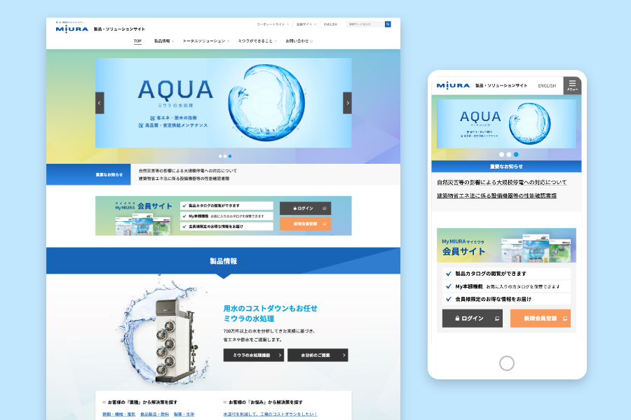 各種製品情報、ミウラのトータルソリューションなどをご紹介