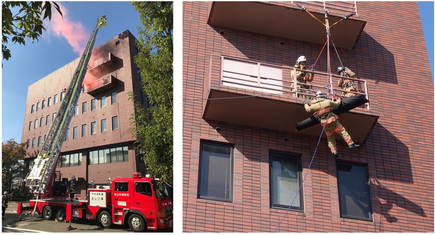 今回の訓練は、地震発生時に、ミウラ本社ビル(鉄筋コンクリート造6階建て)の3階から火災が発生した想定で、ビル内で勤務している従業員の避難、火災により逃げ遅れた従業員の救助、避難中の負傷者発生時のトリアージ対応、消火活動及び人命救助活動を行いました。