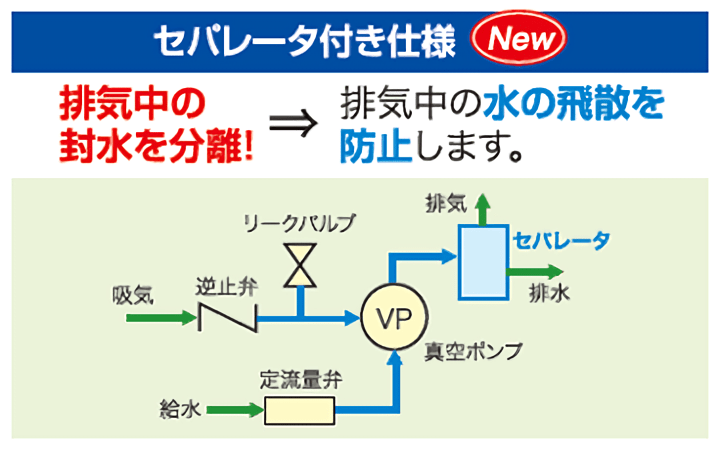 排気セパレータなどの付帯品を組込んだセパレータ付き仕様と、